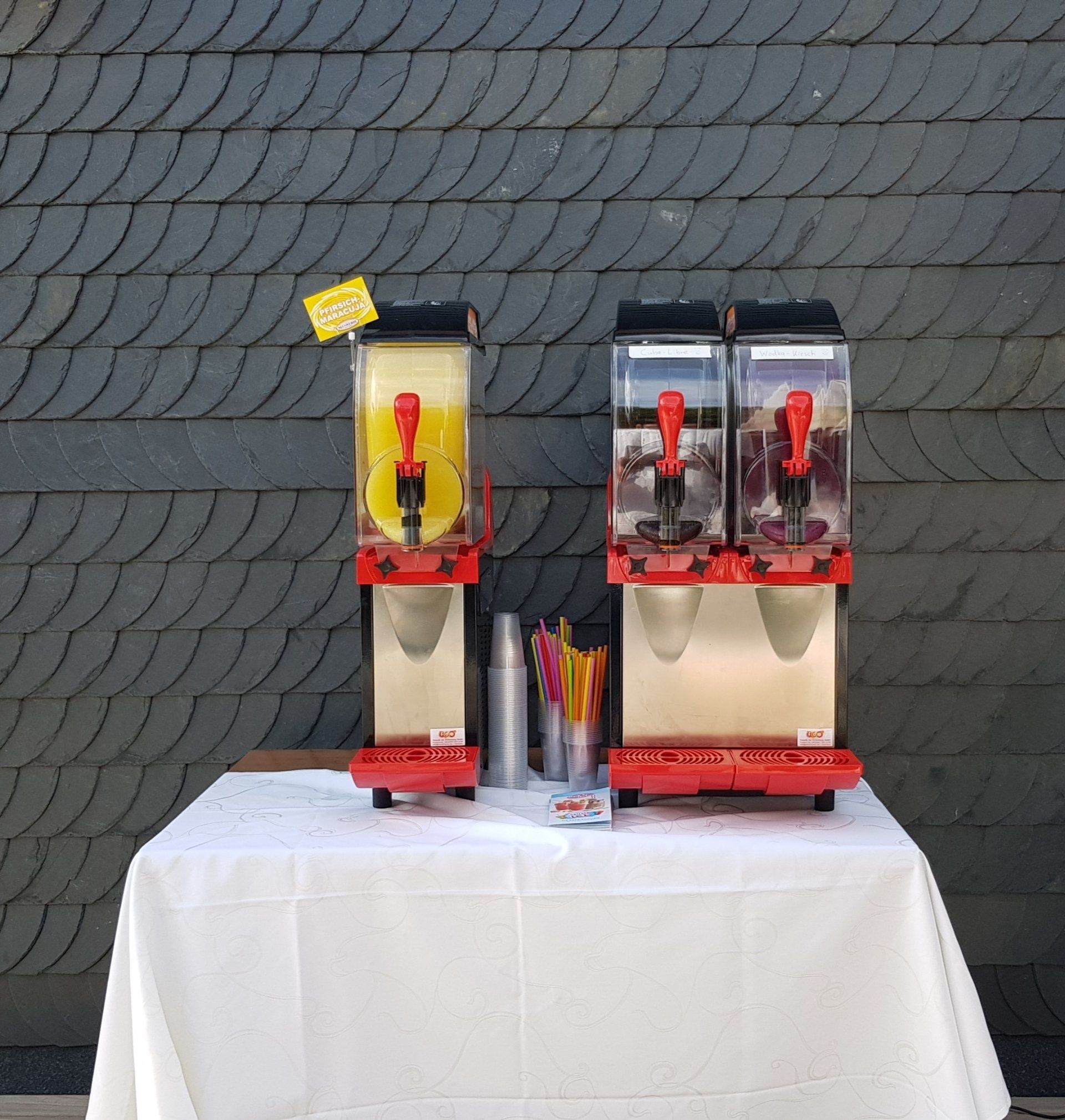 Wir vermieten Slush Ice und Frozen Shake Maschinen inklusive Grundstoffe und Zubehör.
